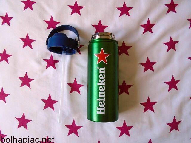 Eladó új zöld szinű Heineken fém kulacs 500ml, szivószálas.